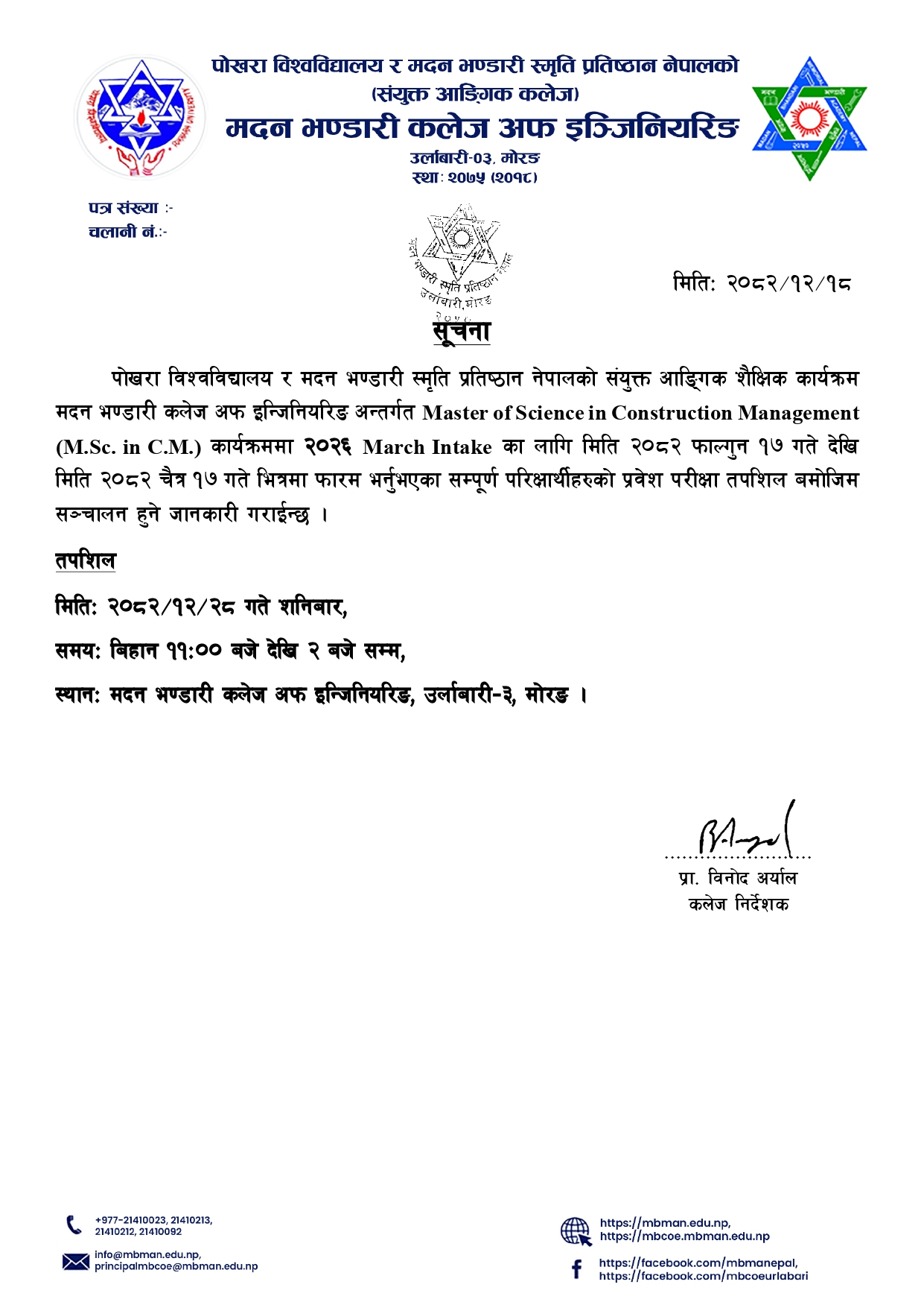 M.Sc. in C.M. Entrance Notice Published: Apr 1, 2026 a Attached Resources 657267964_122319704696080506_7102320796791370488_n.jpg